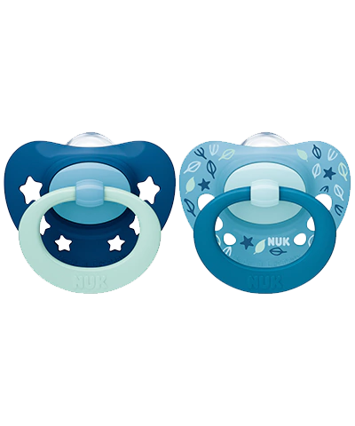 Con sistema de ventilación NUK AIR SYSTEM. El aire escapa a través de la tetina, lo que permite que ésta permanezca suave y moldeable y además previene la deformación de la mandíbula del bebé.